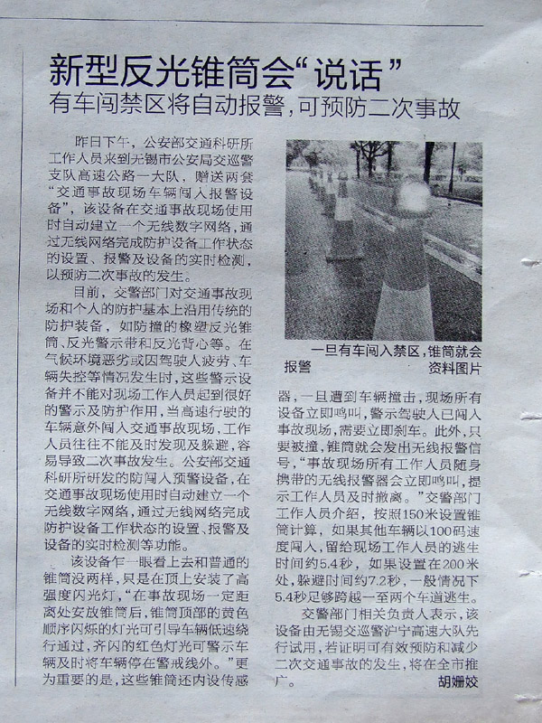 無錫現(xiàn)代快報報道YJ-3型事故現(xiàn)場遠視距防入侵警示設備 2013-05-23 在5月22日,無錫現(xiàn)代快報上報道介紹了由我公司生產的YJ-3型事故現(xiàn)場遠視距防入侵警示設備